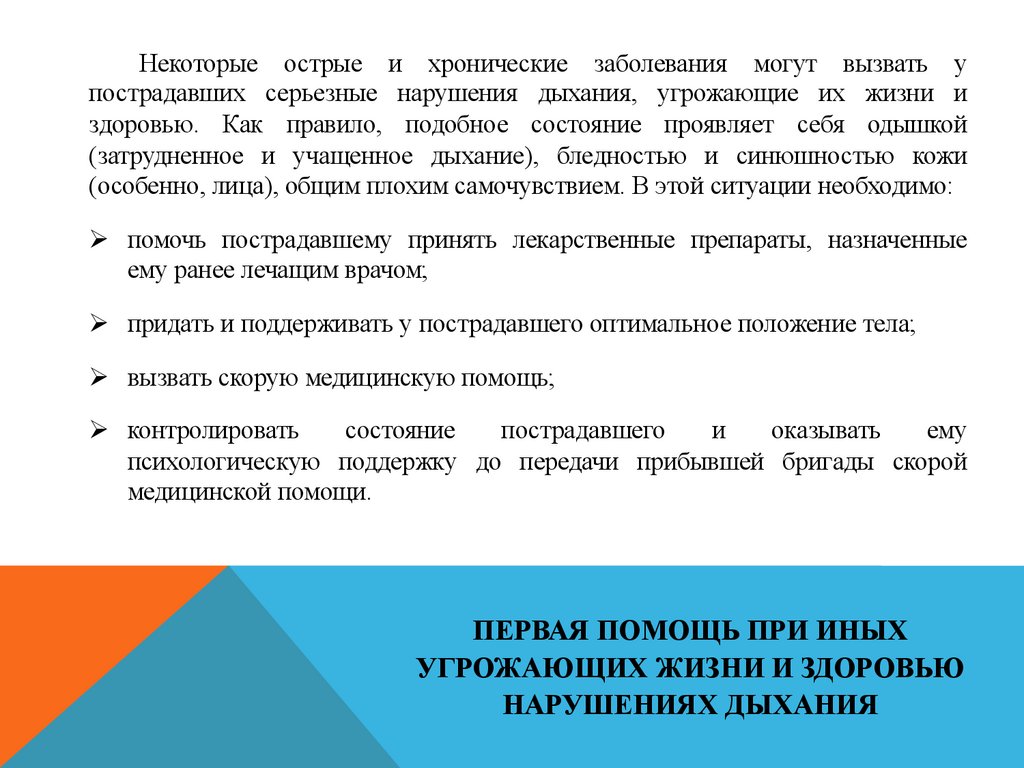 Некоторые острые и хронические заболевания могут вызвать упострадавших серьезные нарушения дыхания, угрожающие их жизни и