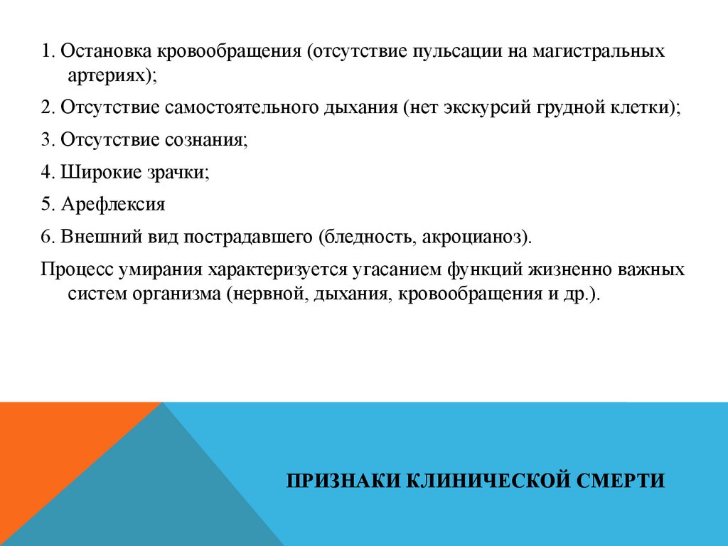 ПРИЗНАКИ КЛИНИЧЕСКОЙ СМЕРТИ