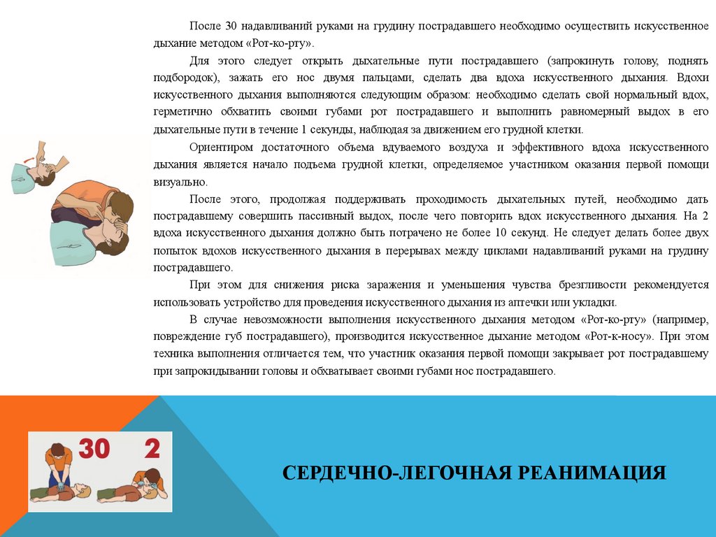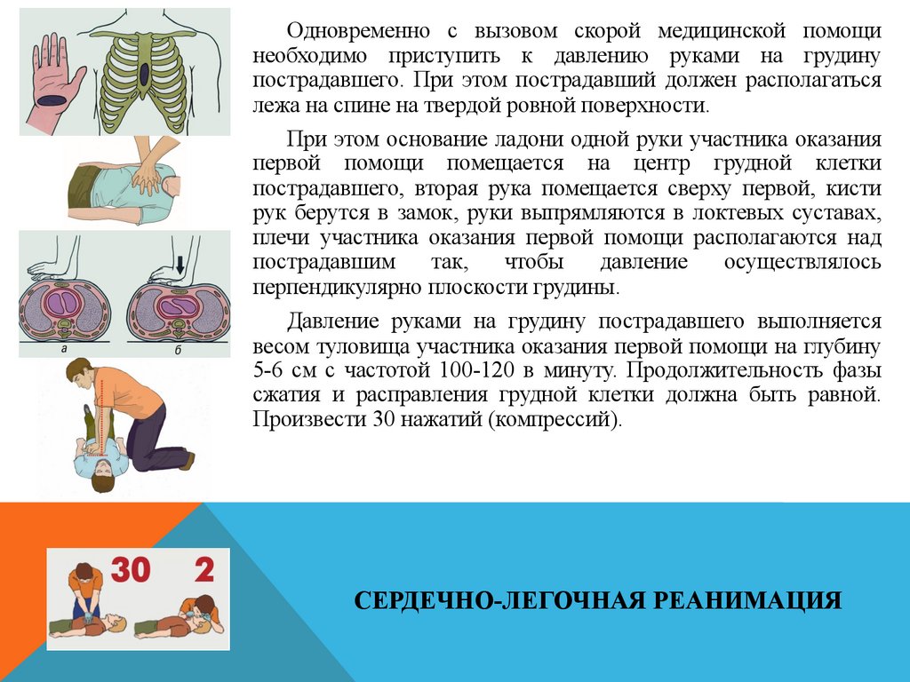 Если пострадавший потерял сознание – необходимо начать сердечно-лёгочную