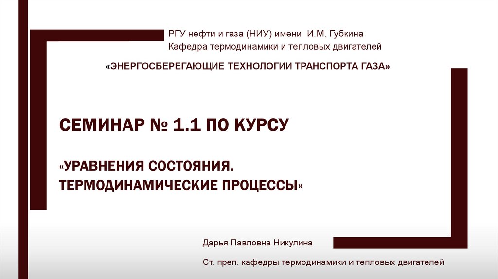 РГУ нефти и газа (НИУ) имени И.М. ГубкинаКафедра термодинамики и тепловых двигателей