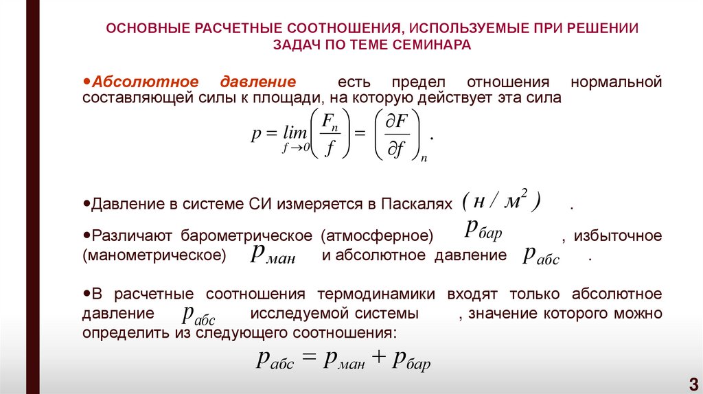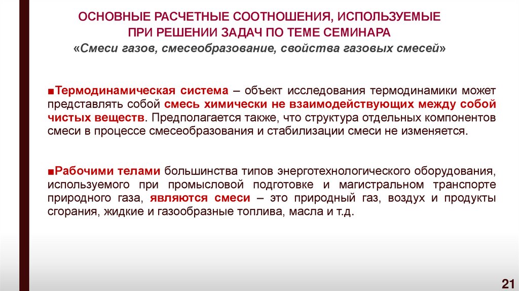 ОСНОВНЫЕ РАСЧЕТНЫЕ СООТНОШЕНИЯ, ИСПОЛЬЗУЕМЫЕ ПРИ РЕШЕНИИЗАДАЧ ПО ТЕМЕ СЕМИНАРА