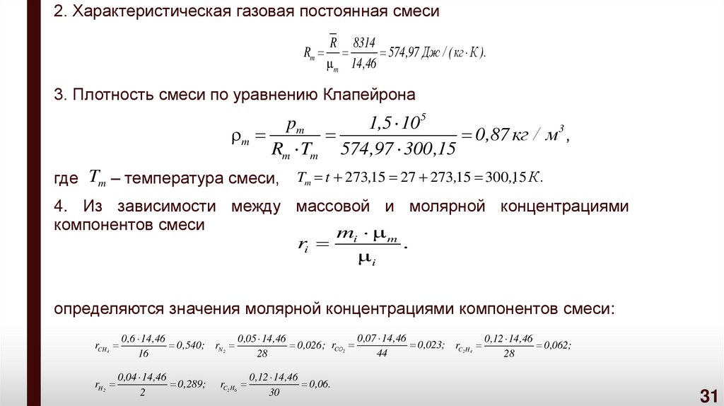 где R – универсальная газовая постоянная, R 8314 Дж /( кмоль К )–