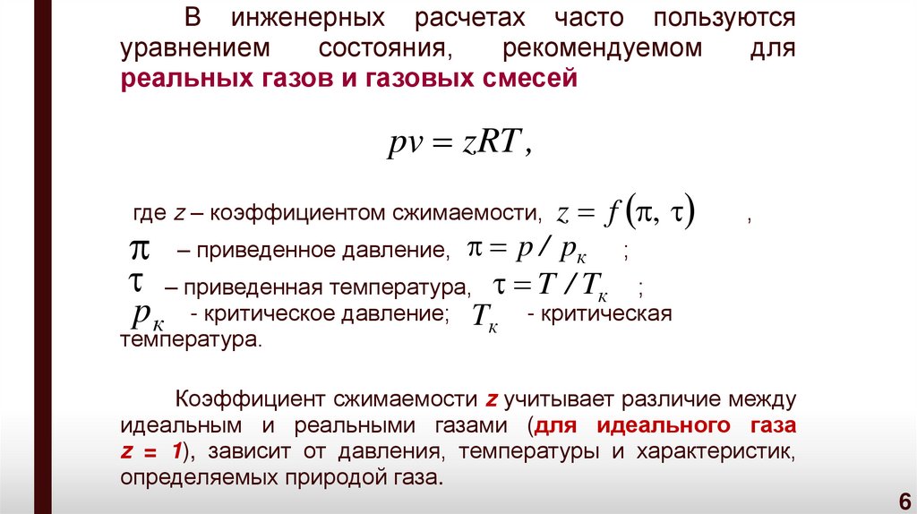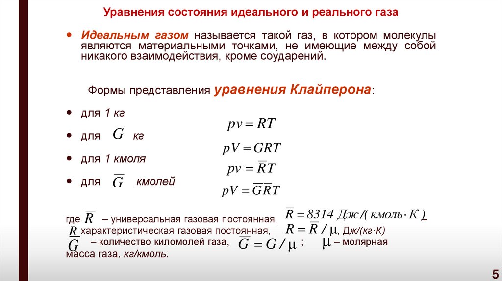 Уравнения состояния идеального и реального газаИдеальным газом называется такой газ, в котором молекулы