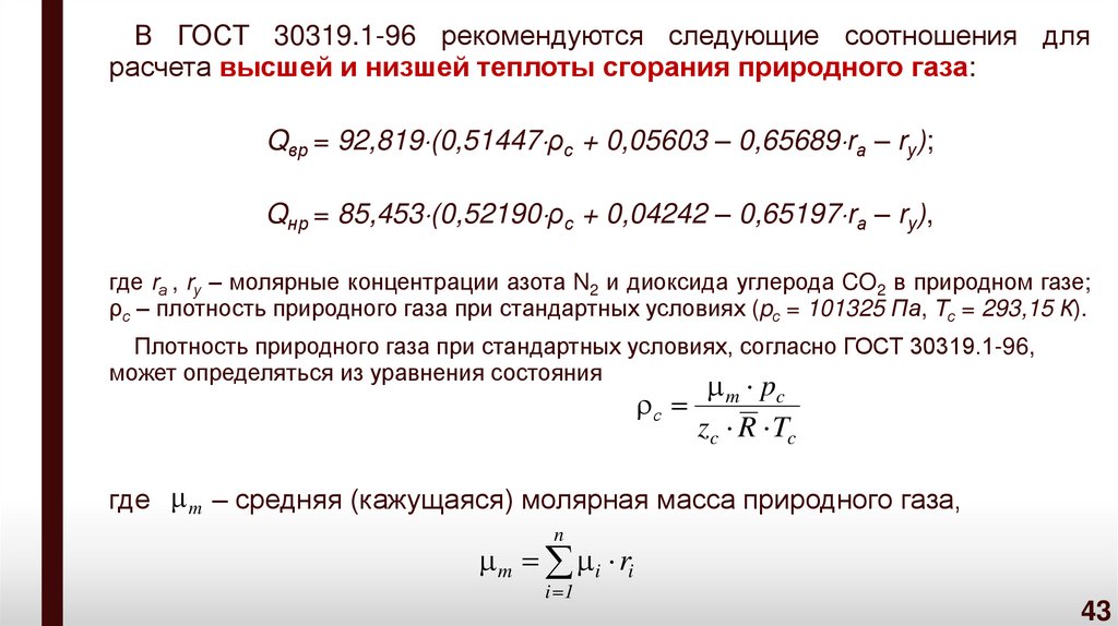 Задача № 1Определить плотность природного газа при молярной концентрации