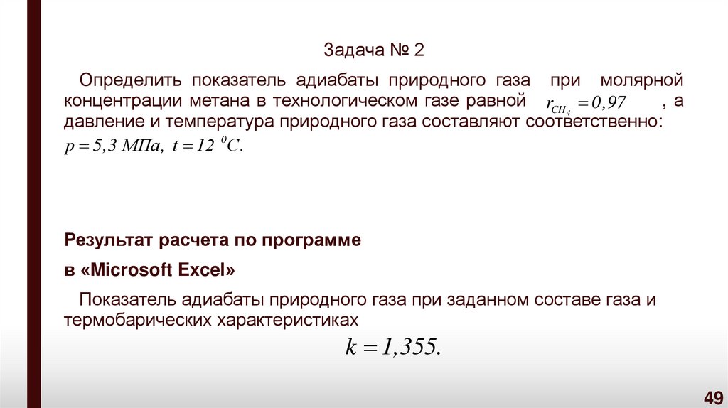 Задача № 2Определить показатель адиабаты природного газа при молярной