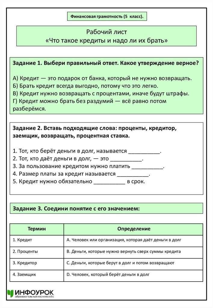 А) Кредит — это подарок от банка, который не нужно возвращать.