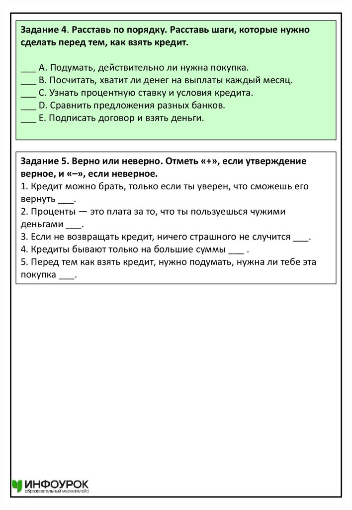 Задание 4. Расставь по порядку. Расставь шаги, которые нужносделать перед тем, как взять кредит.
