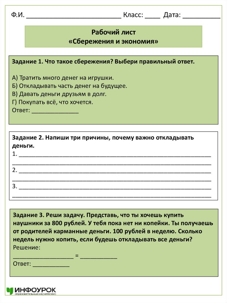 Рабочий лист по финансовой грамотности Сбережения (1)