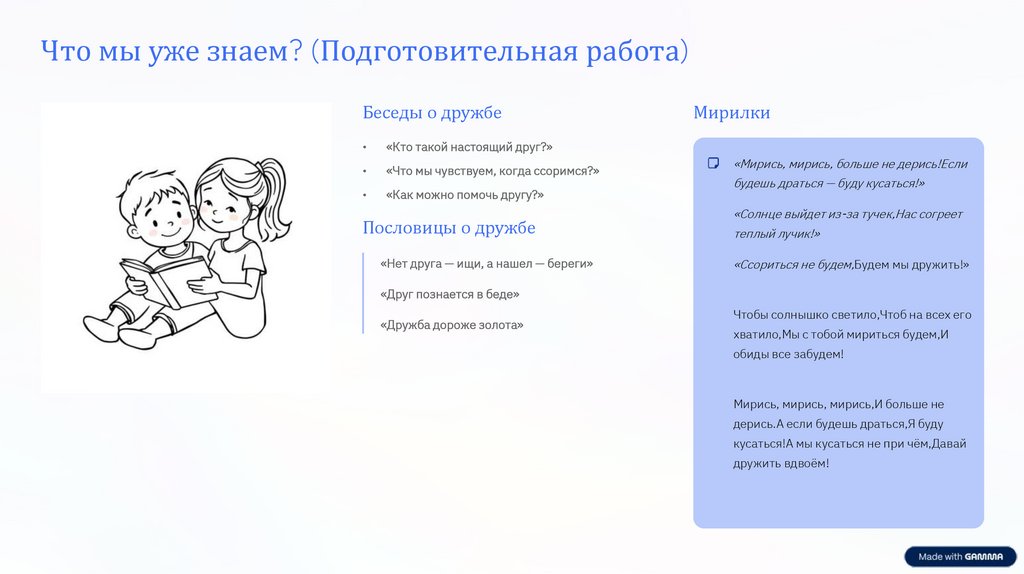 Что мы уже знаем? (Подготовительная работа)Беседы о дружбе