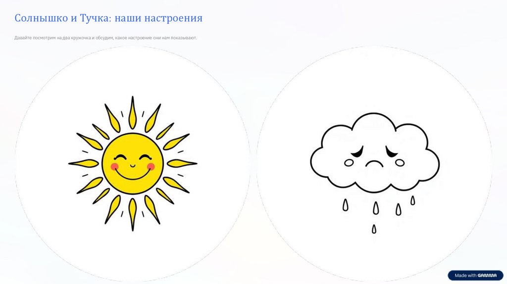 Солнышко и Тучка: наши настроенияДавайте посмотрим на два кружочка и обсудим, какое настроение они нам показывают.