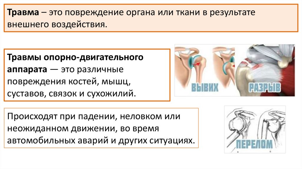 Травма – это повреждение органа или ткани в результатевнешнего воздействия.