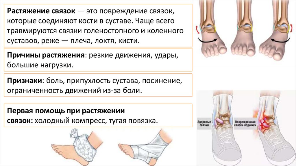 Растяжение связок — это повреждение связок,которые соединяют кости в суставе. Чаще всего