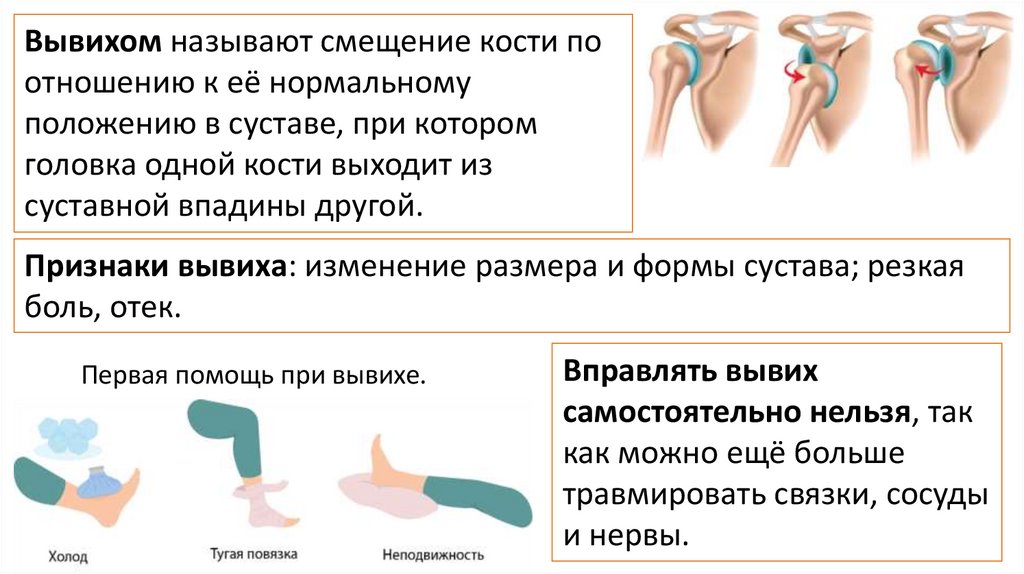 Признаки вывиха: изменение размера и формы сустава; резкая