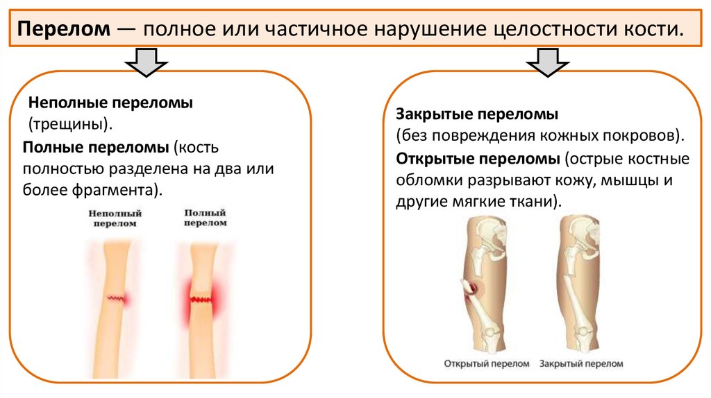 Перелом — полное или частичное нарушение целостности кости.Неполные переломы