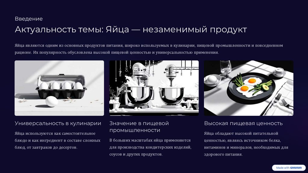 ВведениеАктуальность темы: Яйца — незаменимый продукт