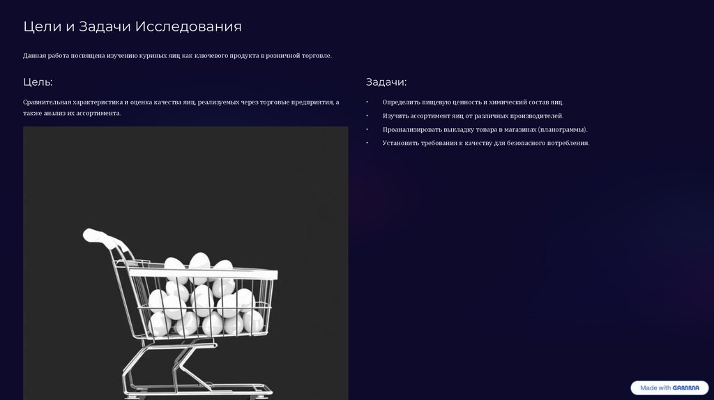 Цели и Задачи ИсследованияДанная работа посвящена изучению куриных яиц как ключевого продукта в розничной торговле.