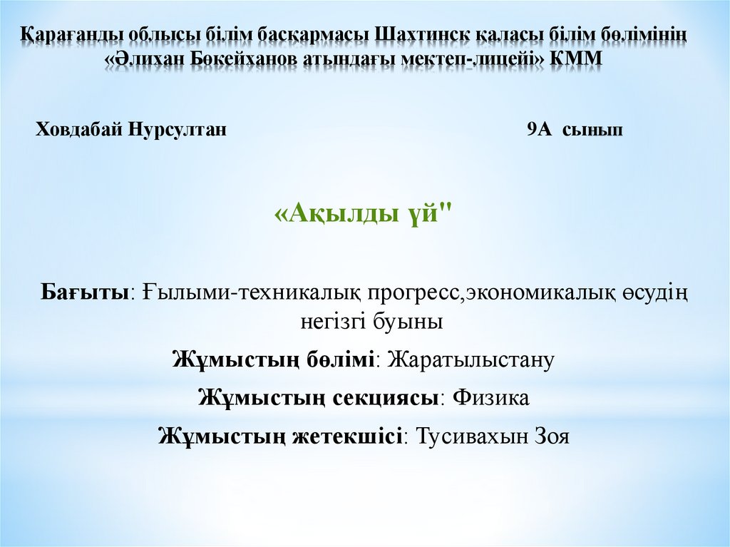 барлығы іске асуда.соның бірі Ақылды үй жөнінде мағлұматтары