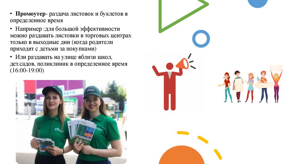 • Промоутер- раздача листовок и буклетов вопределенное время