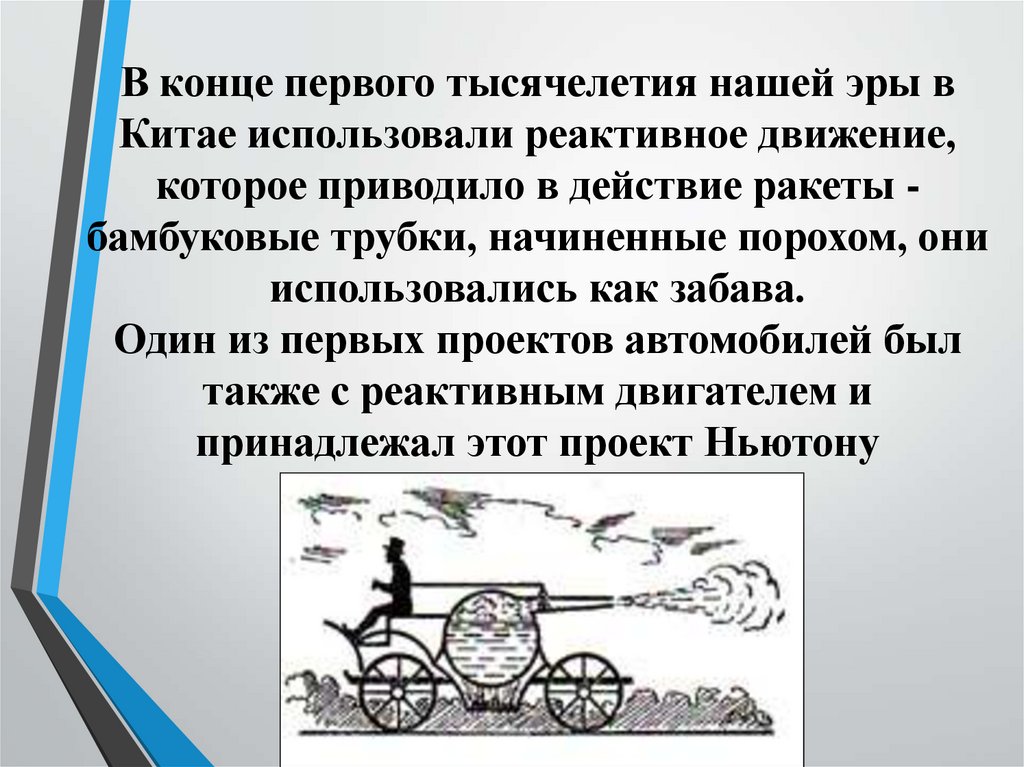 В конце первого тысячелетия нашей эры вКитае использовали реактивное движение,