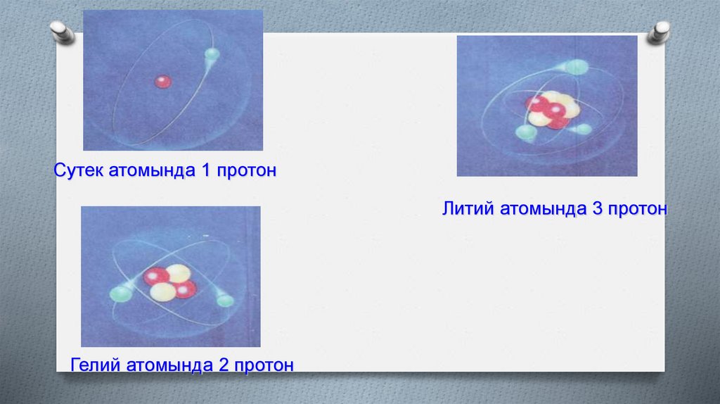 Сутек атомында 1 протонЛитий атомында 3 протон
