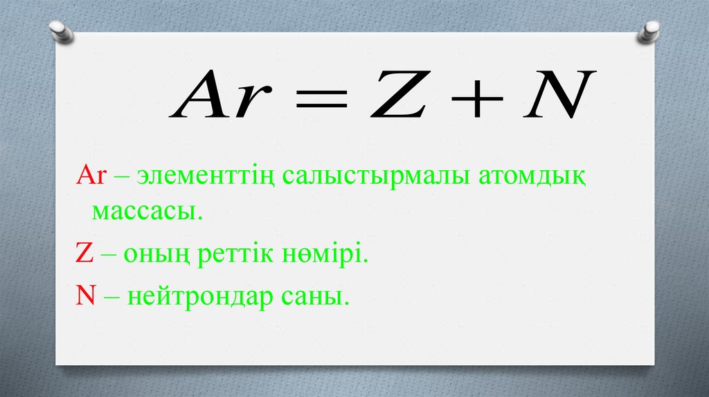 Ar Z NAr – элементтің салыстырмалы атомдық