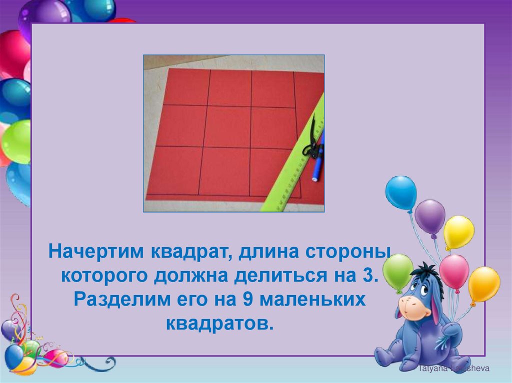 Начертим квадрат, длина стороныкоторого должна делиться на 3.