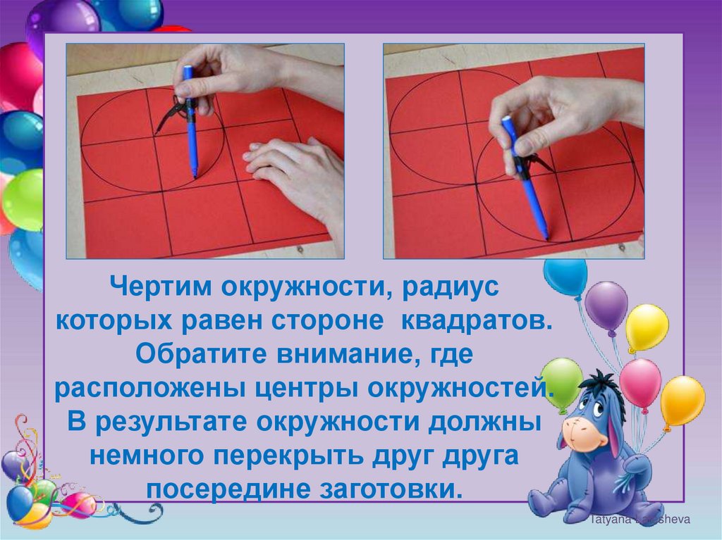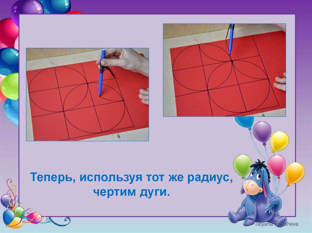 Чертим окружности, радиускоторых равен стороне квадратов.