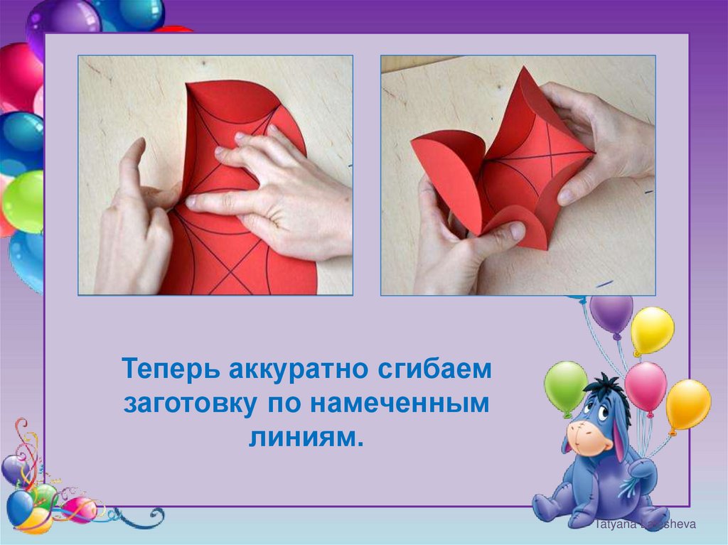 Теперь аккуратно сгибаемзаготовку по намеченным