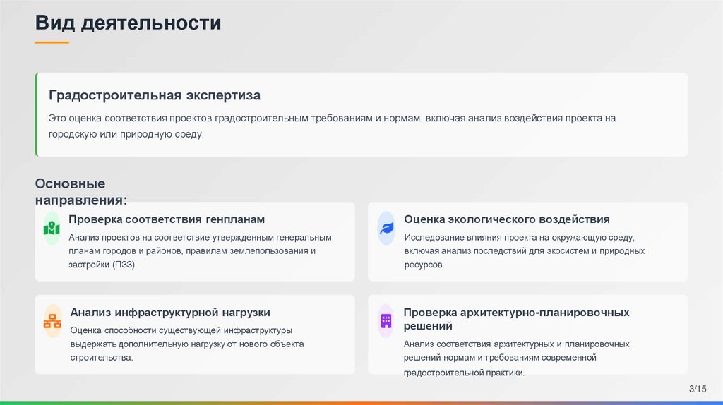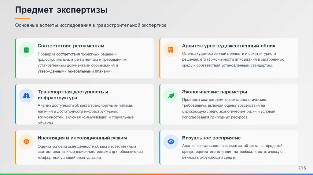 Это оценка соответствия проектов градостроительным требованиям и нормам, включая анализ воздействия проекта на