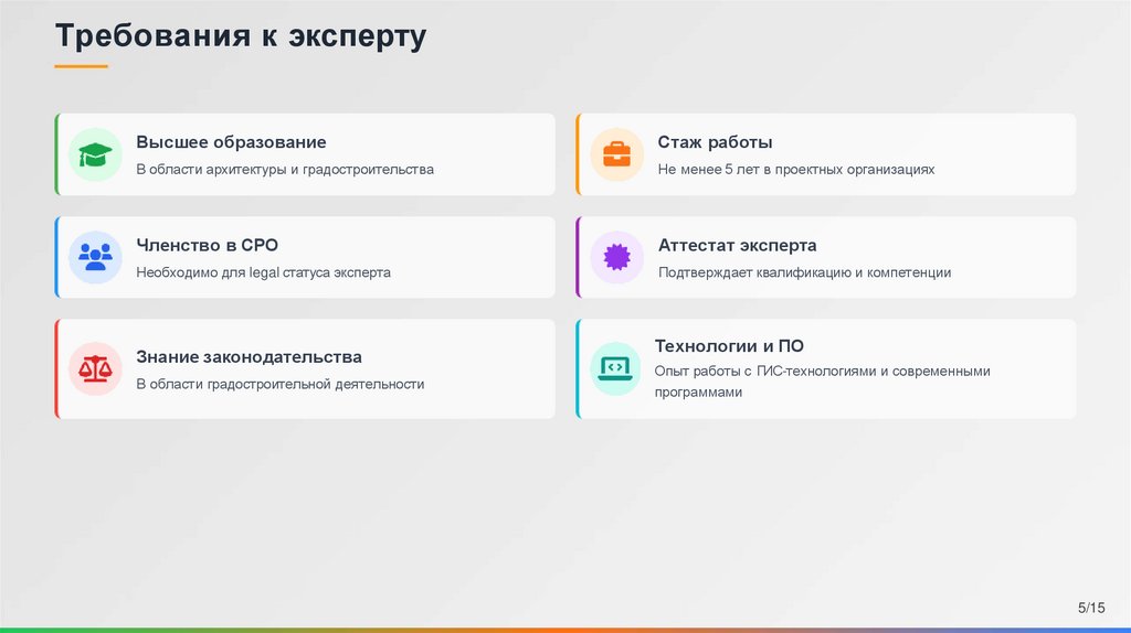 Назовите 3 основных требования к эксперту в области градостроительства.