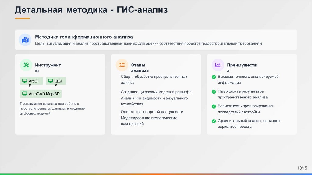 Навыки анализа и прогнозирования последствий застройки, умение работать с