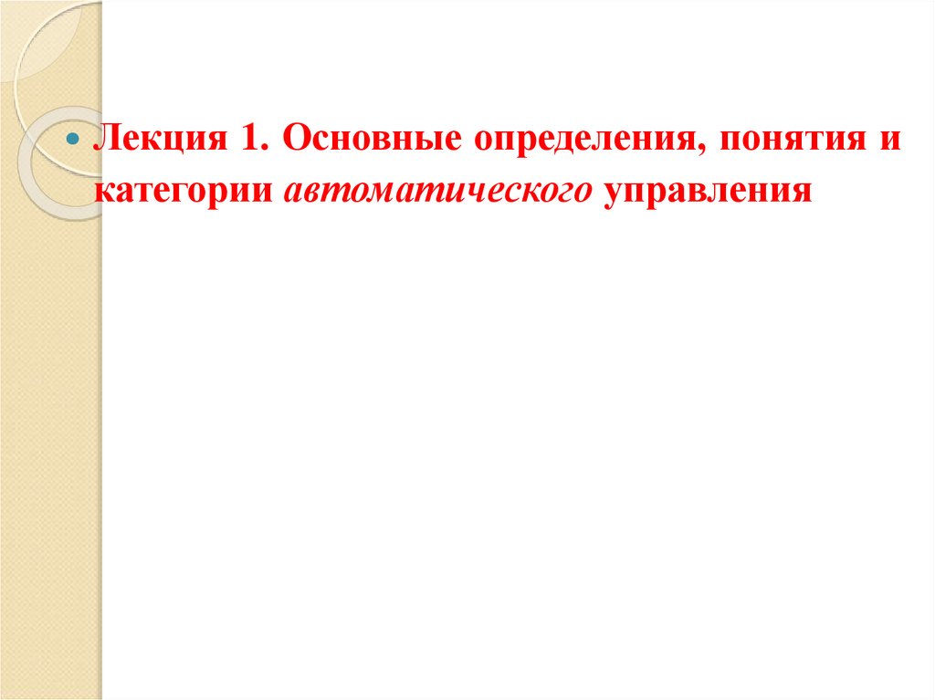 Лекция 1. Основные определения, понятия икатегории автоматического управления