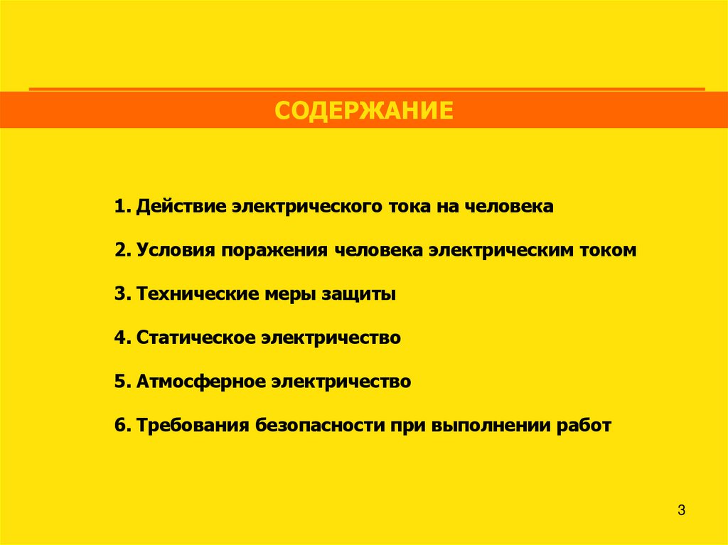 СОДЕРЖАНИЕ1. Действие электрического тока на человека