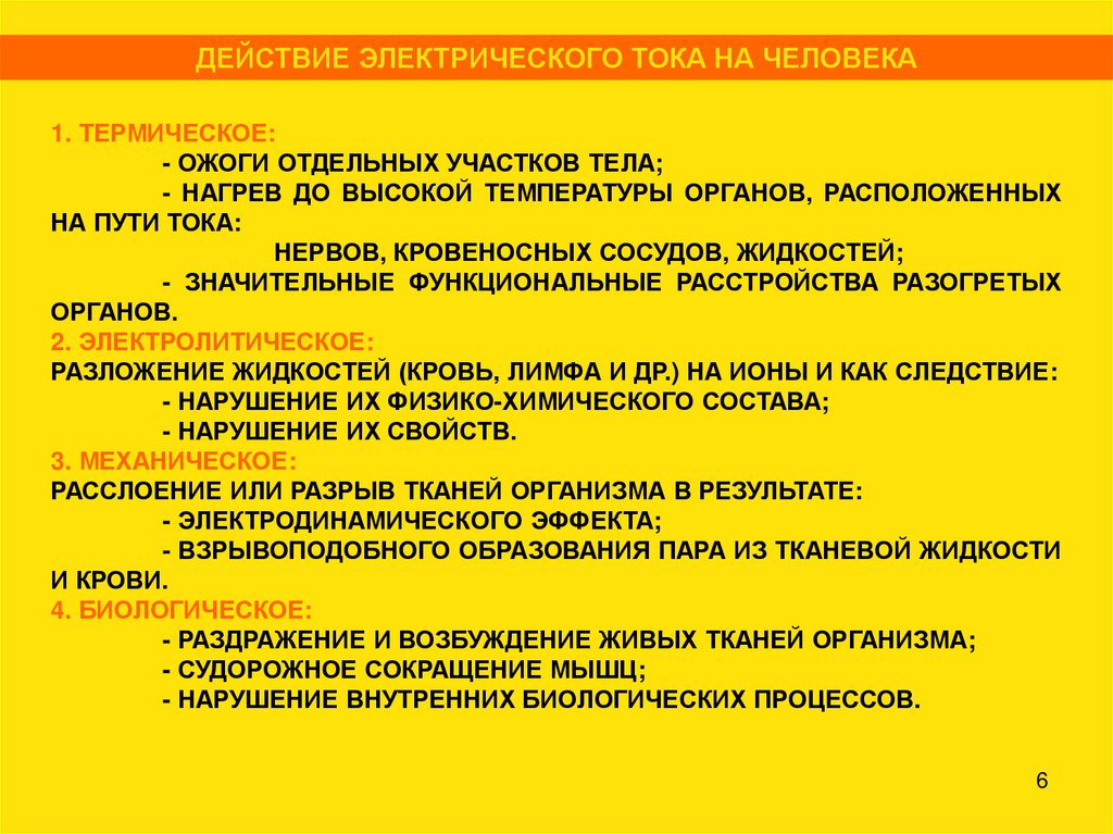 ДЕЙСТВИЕ ЭЛЕКТРИЧЕСКОГО ТОКА НА ЧЕЛОВЕКАЭЛЕКТРОТРАВМА