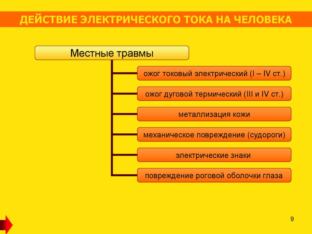 ДЕЙСТВИЕ ЭЛЕКТРИЧЕСКОГО ТОКА НА ЧЕЛОВЕКАМестные травмы
