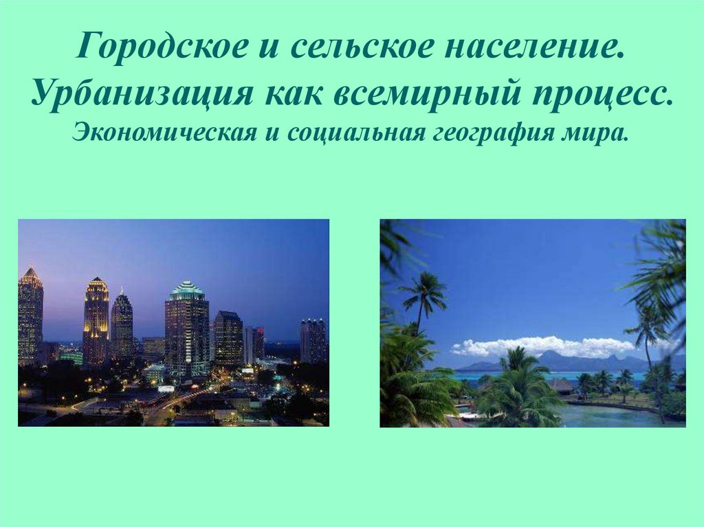 1. Городское и сельское население. Урбанизация как всемирный процесс. Экономическая и социальная география мира.