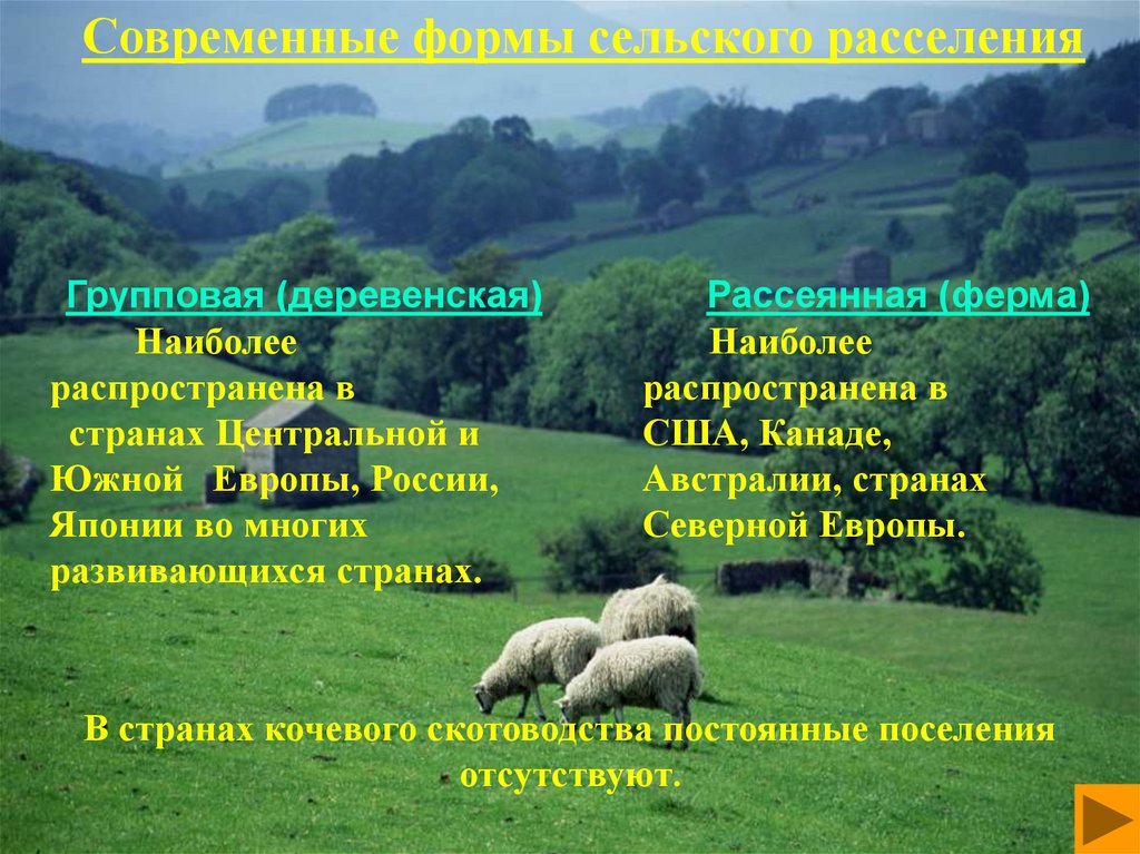 Современные формы сельского расселенияГрупповая (деревенская)