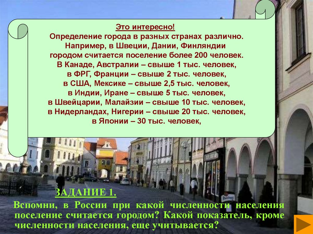 Это интересно!Определение города в разных странах различно.