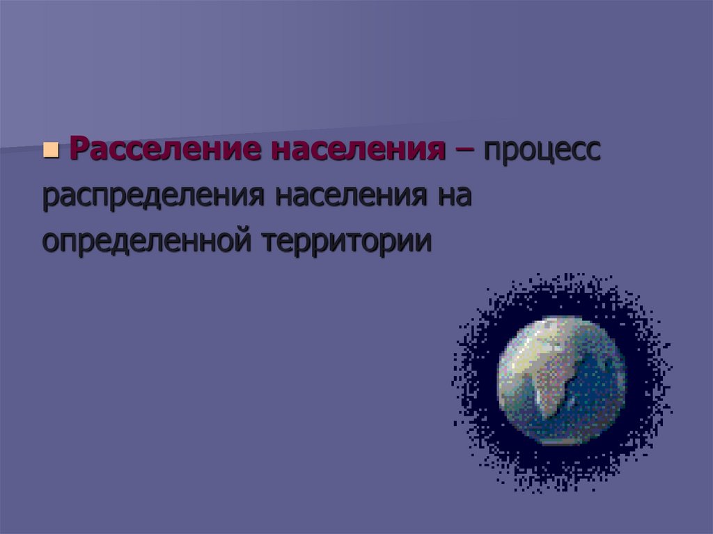 Расселение населения – процессраспределения населения на