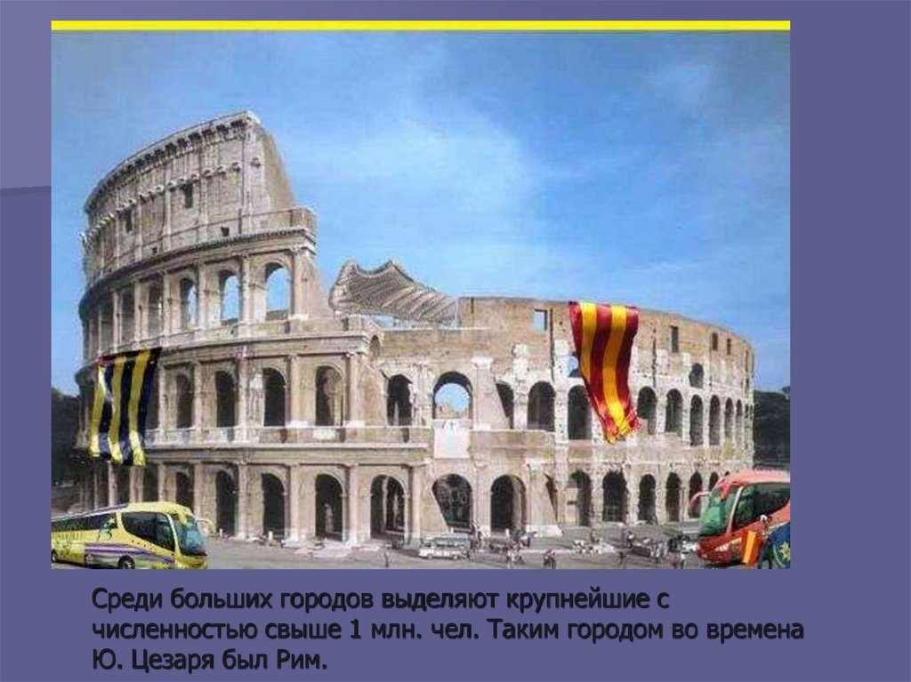 Среди больших городов выделяют крупнейшие счисленностью свыше 1 млн. чел. Таким городом во времена