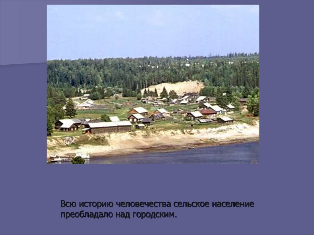 Всю историю человечества сельское населениепреобладало над городским.