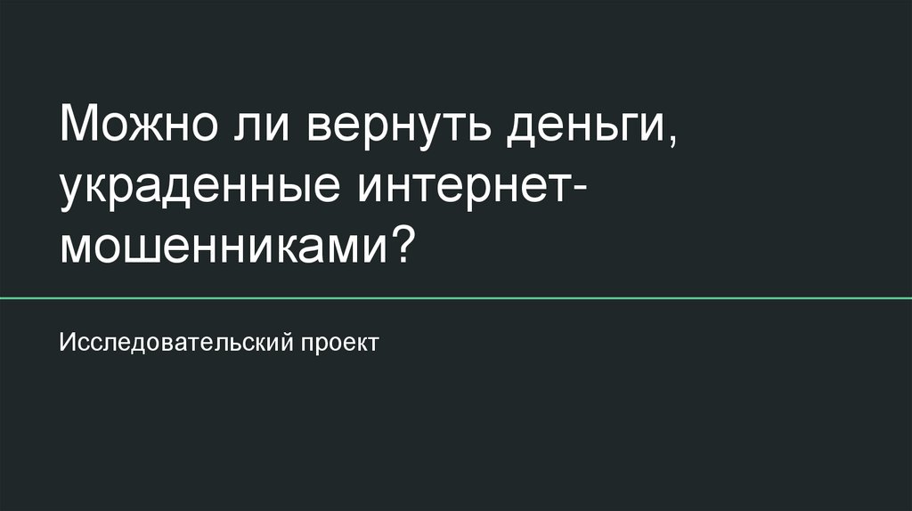 Изучить возможности возврата украденных средств и разработать рекомендации дляпострадавших от интернет-мошенничества.