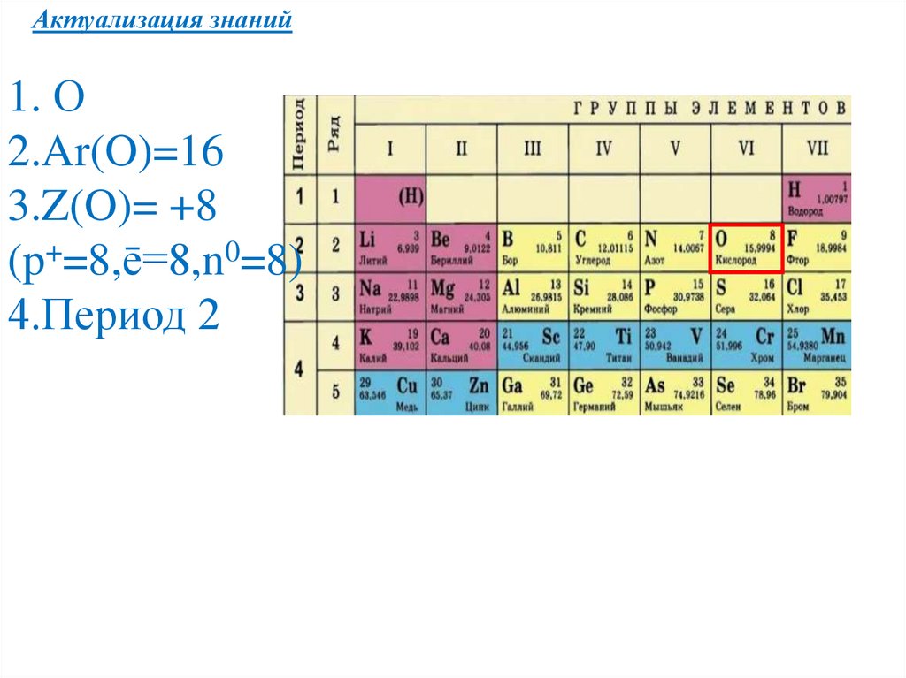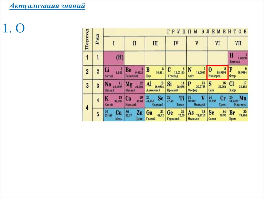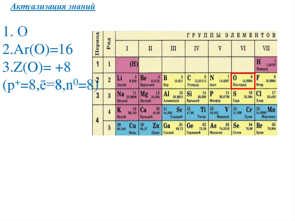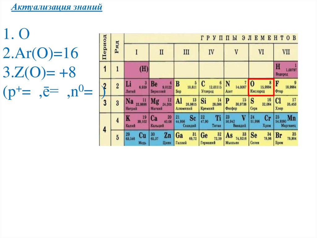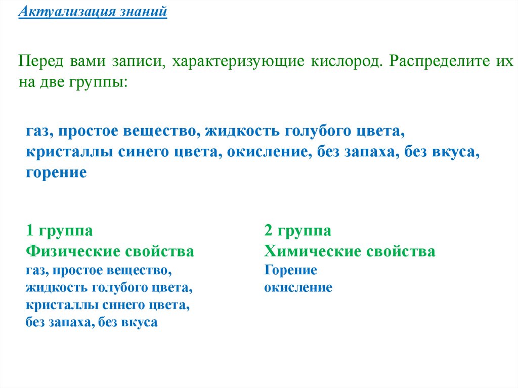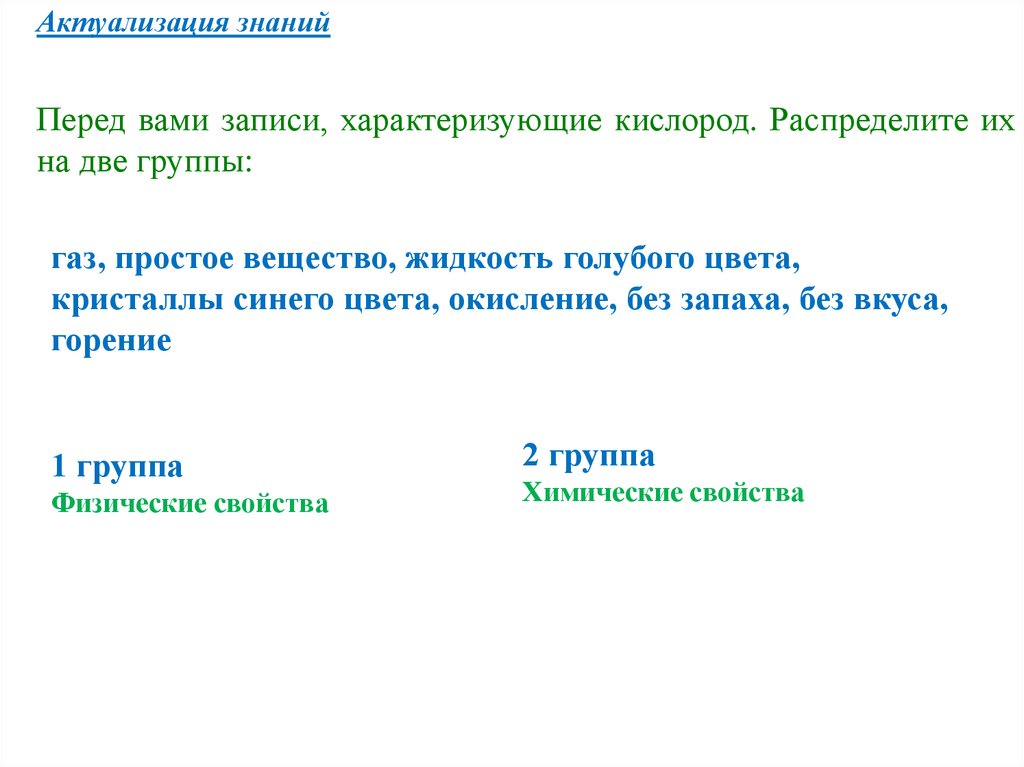 Актуализация знанийПеред вами записи, характеризующие кислород. Распределите их
