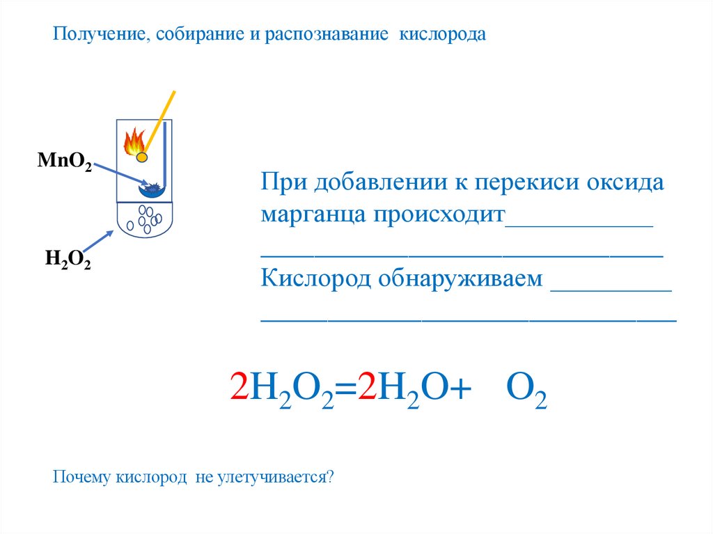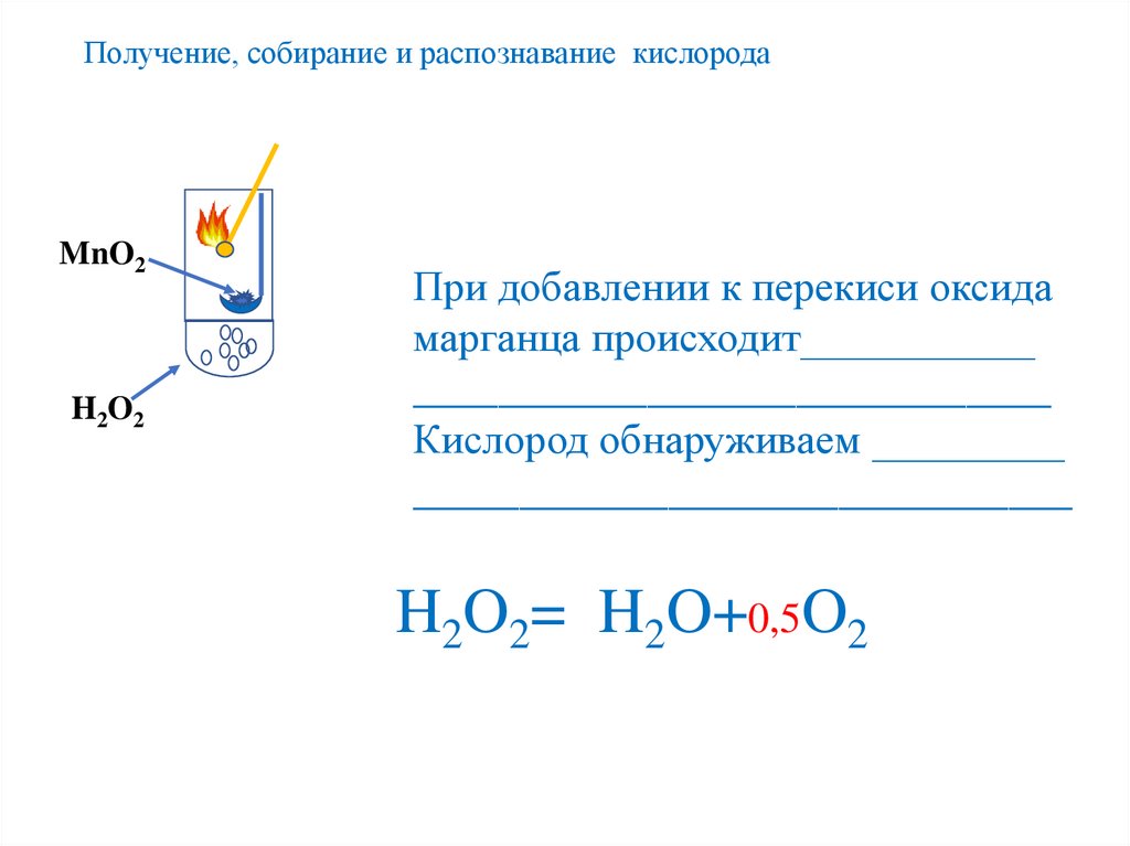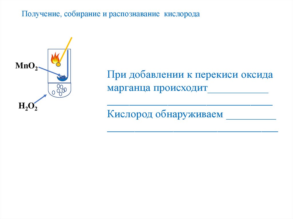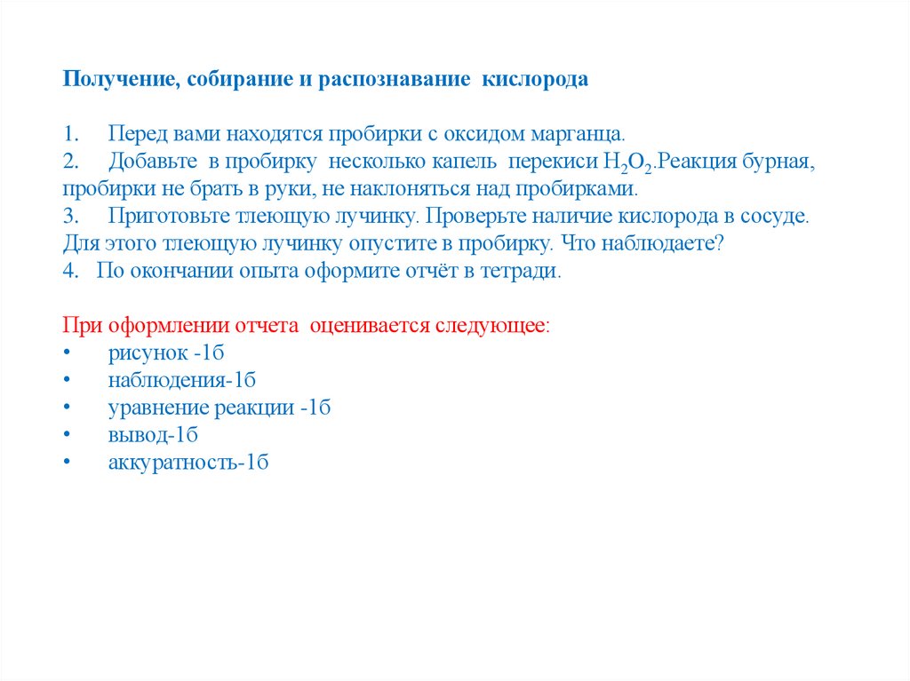 Получение, собирание и распознавание кислорода1. Перед вами находятся пробирки с оксидом марганца.