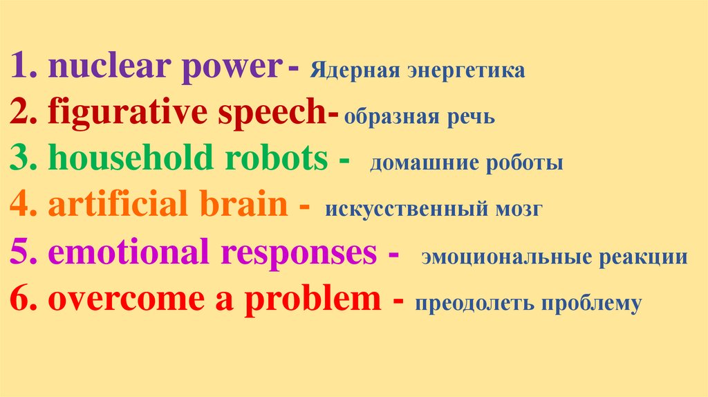 1. nuclear power- Ядерная энергетика2. figurative speech- образная речь