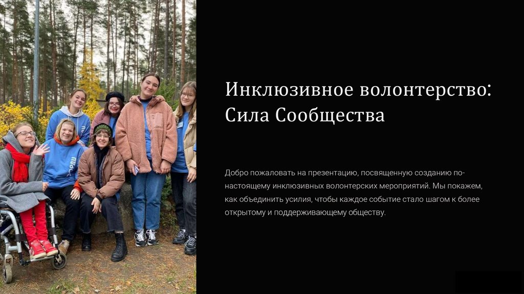 Добро пожаловать на презентацию, посвященную созданию понастоящему инклюзивных волонтерских мероприятий. Мы покажем,
