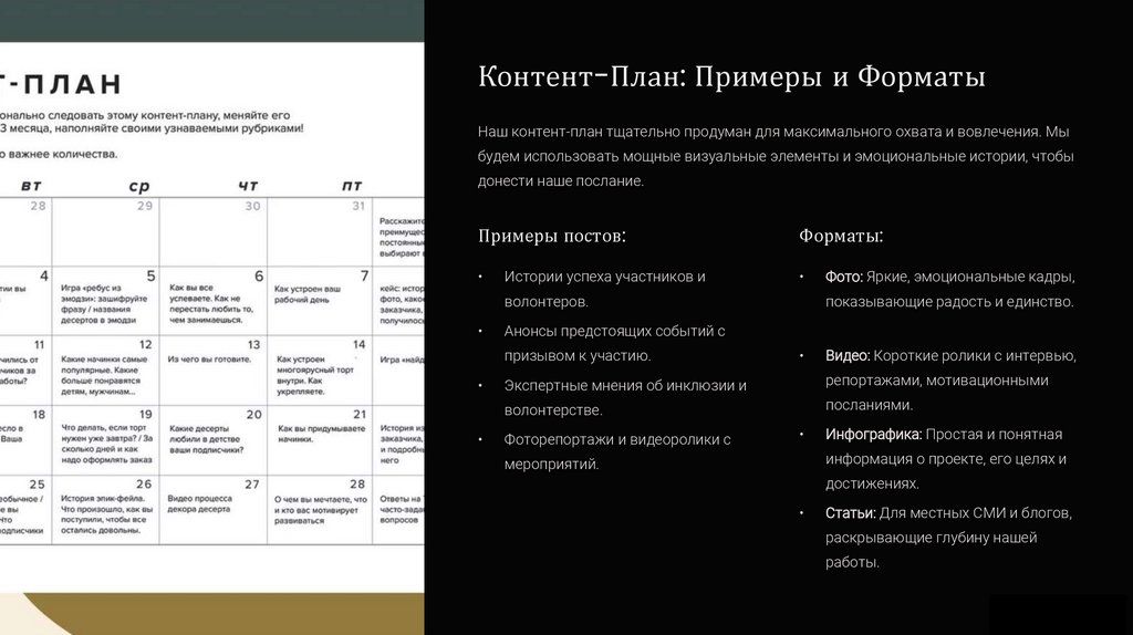 Контент-План: Примеры и ФорматыНаш контент-план тщательно продуман для максимального охвата и вовлечения. Мы