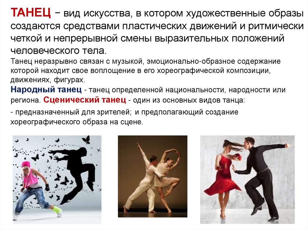 ТАНЕЦ − вид искусства, в котором художественные образысоздаются средствами пластических движений и ритмически