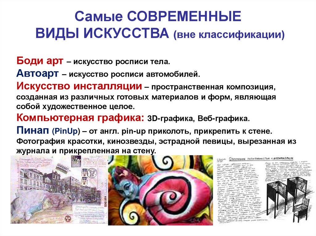 Самые СОВРЕМЕННЫЕВИДЫ ИСКУССТВА (вне классификации)