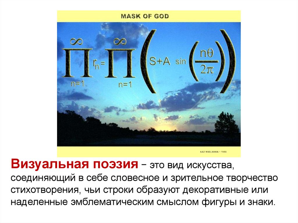 Визуальная поэзия − это вид искусства,соединяющий в себе словесное и зрительное творчество